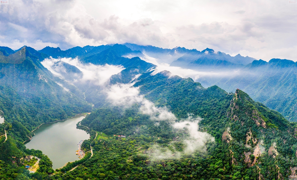 數(shù)十分鐘后,雨帶北移,秦嶺終南山世界地質(zhì)公園翠華山景區(qū)驚現(xiàn)云海。