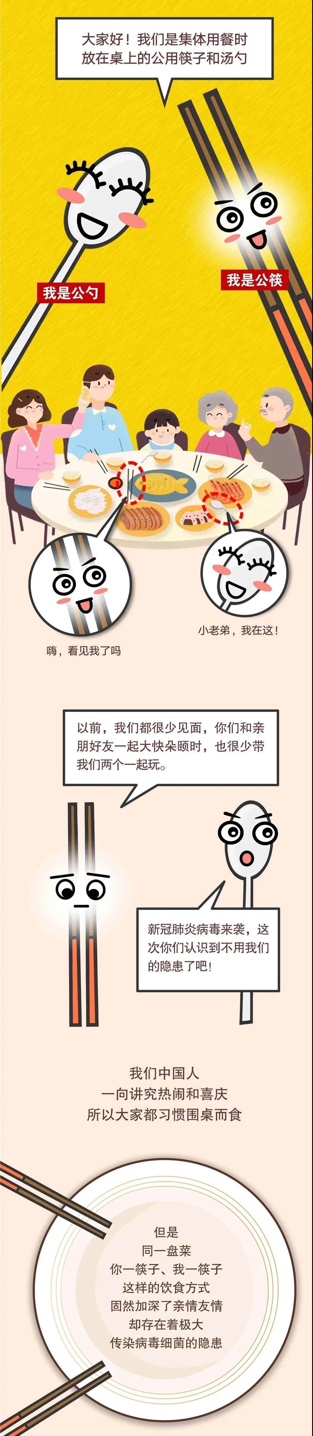 餐桌舉止非小事,一筷一勺見(jiàn)文明,親情友情不可少,防病除菌更重要,所以請(qǐng)養(yǎng)成使用公筷公勺的良好習(xí)慣!為有效防止病毒在餐桌上蔓延,讓安全、健康、文明的用餐方式,惠及每個(gè)家庭、每位居民。